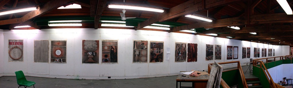 The Metaning is an art project by Matt Godden – a 22 page gallery wall scale graphic novel, with pages approximately 113x82cm in size. The Metaning is reportedly the first work of this nature created in Australia…